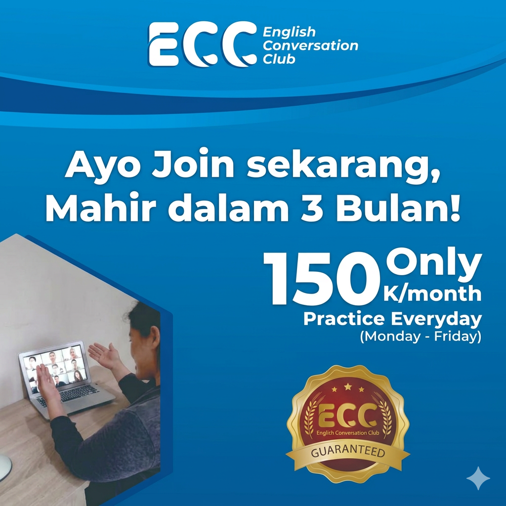 Join dengan komunitas kami, pembelajaran Bahasa Inggris super murah dengan hasil yang luar biasa karena anda akan selalu terlibat dalam komunitas untuk menggunakan Bahasa Inggris setiap hari dari Senin sampai Jumat kecuali hari Libur Nasional/Cuti Bersama.